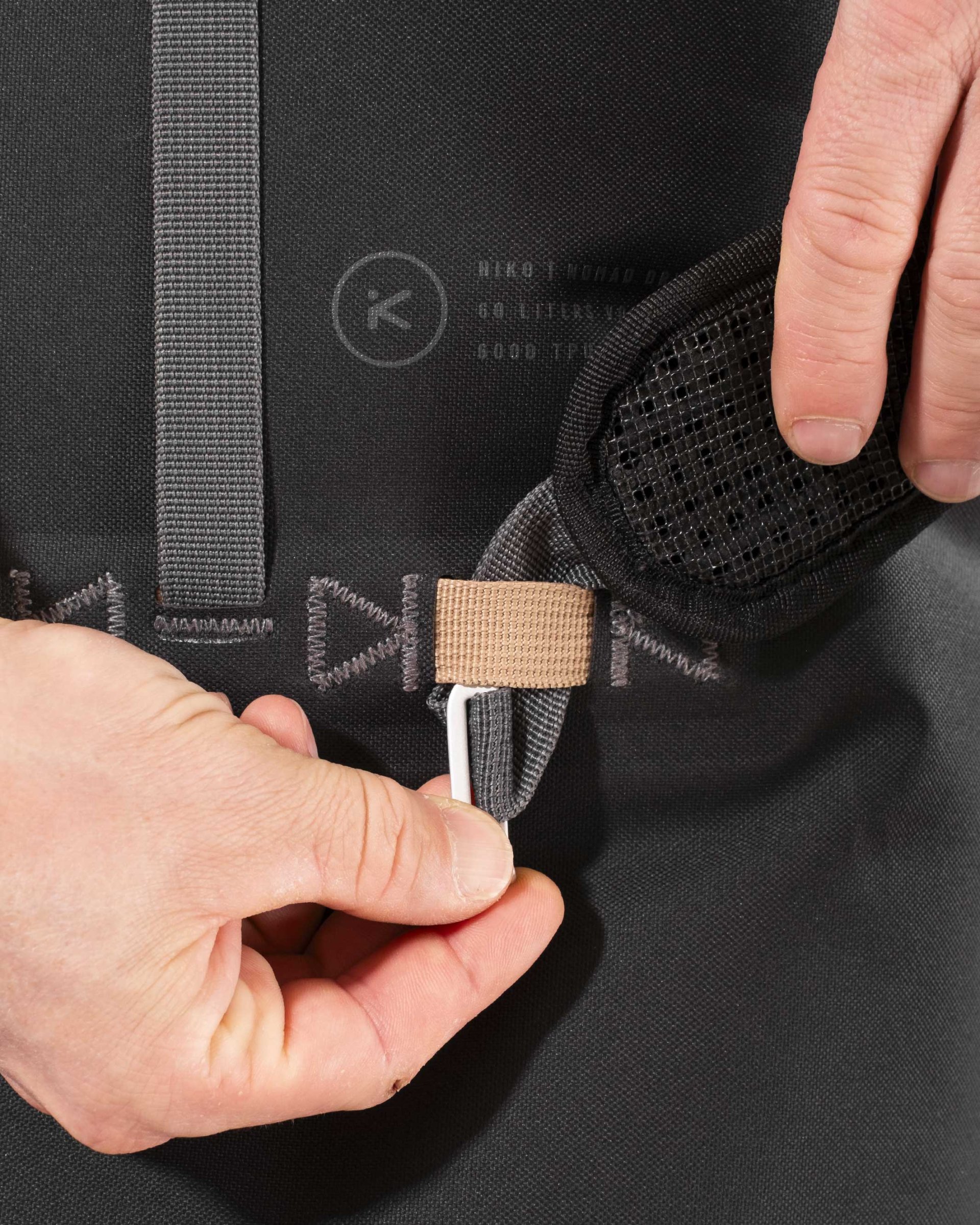 Az állítható vállpántok és a mellkaspánt stabilitást és kényelmet biztosítanak, miközben a deréköv hiánya egyszerűvé, mozgékonnyá és gyorsan kezelhetővé teszi a rendszert. Ez tudatos tervezési döntés — a NOMAD praktikus hordozásra készült, nem expedíciós teherszállításra.